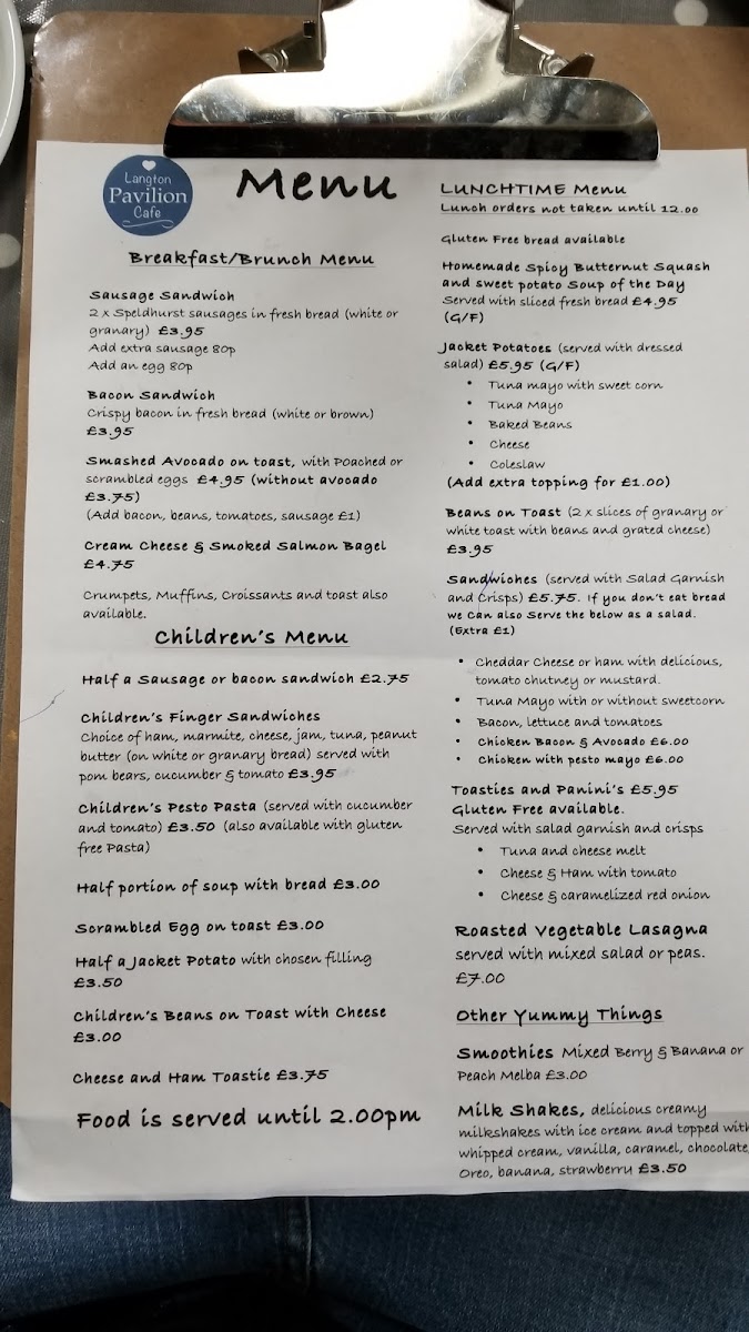 Langton Pavilion Cafe Menu